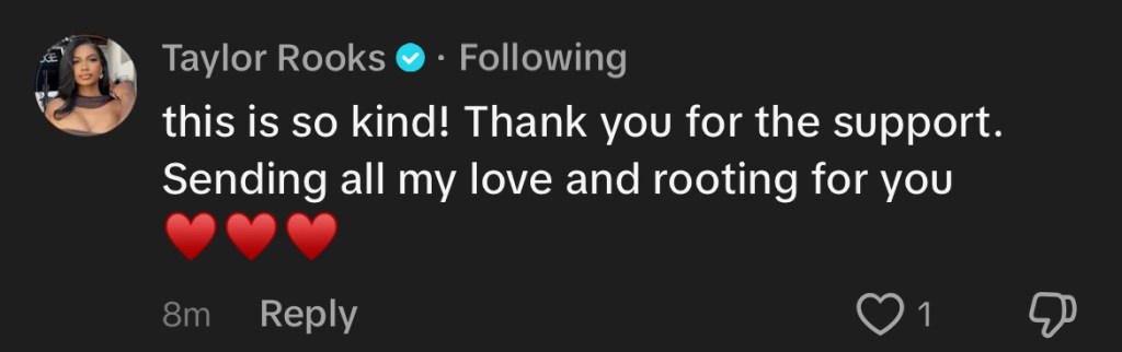 Also, special thanks Taylor Rooks and her very kind response to this video on TikTok! I truly appreciate the support!