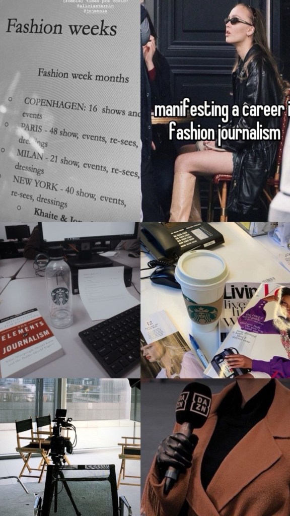 I created this mood board a few years ago when I aspired to work at some of the top fashion magazines, like Teen Vogue or Essence. Whether it was becoming an intern, journalist, or editor, I just wanted to be in the room. I was also writing articles for college programs for Her Campus and College Fashionista to gain more experience. I would write articles about fashion, career, entertainment news, and beauty. Some of my favorite articles I wrote highlighted upcoming black influencers or fashion documentaries that you can watch for career inspiration if you aspire to work in the industry.